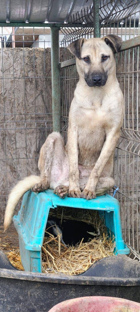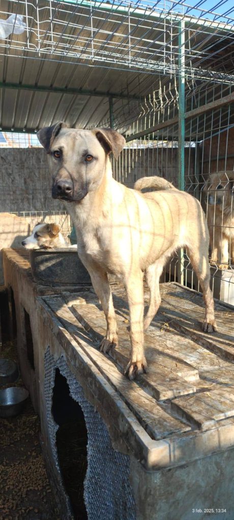Balou ist etwa im Juli 2024 geboren und ca. 50 cm groß. Er lebt seit Februar 2025 in unserem Shelter, nachdem wir ihn aus dem public shelter holen konnten.